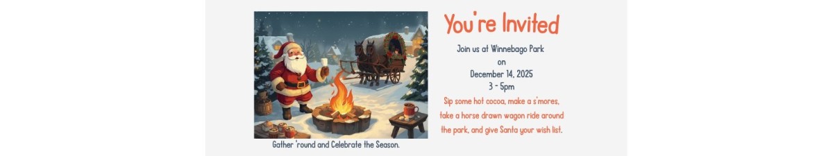 Tomah Holiday Lights invite you to gather ‘round and celebrate the Season! Join us at Winnebago Park on Sunday, December 14, 2025, from 3-5pm. Sip on hot cocoa, make s’mores, take a horse drawn wagon ride around the park, enjoy the holiday lights, and give Santa your wish list!