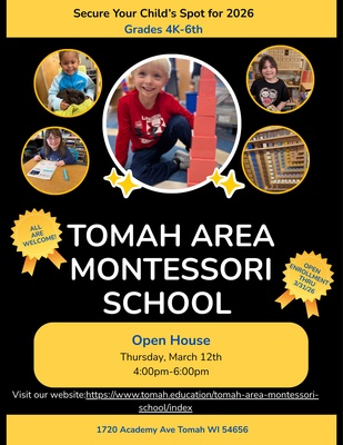 Tomah Area Montessori School is opening its doors and inviting families to learn more about our unique, hands-on approach to learning.